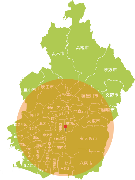 (大阪を主要活動エリアとしております。対象エリアを外れる地域(大阪府外)に関してはご相談させていただくことがあります)