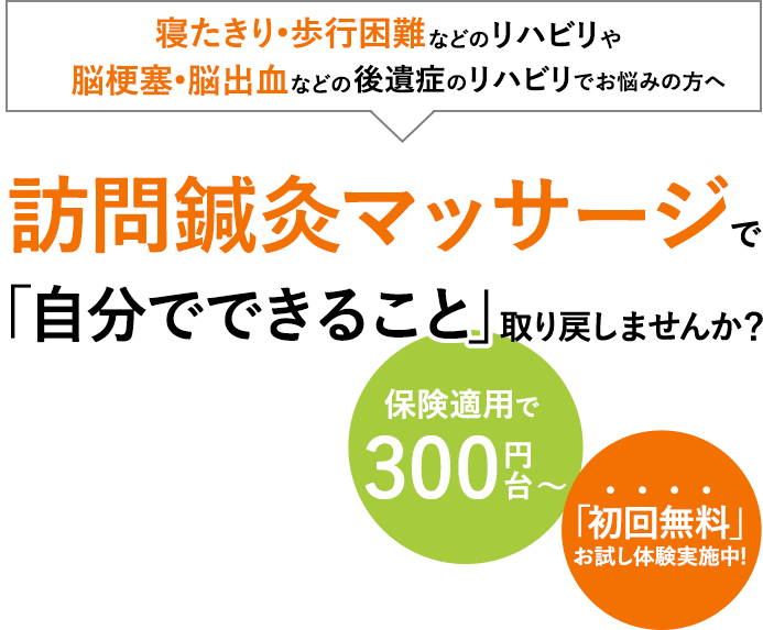 訪問マッサージ、訪問鍼灸を是非ご体感くださいませ。